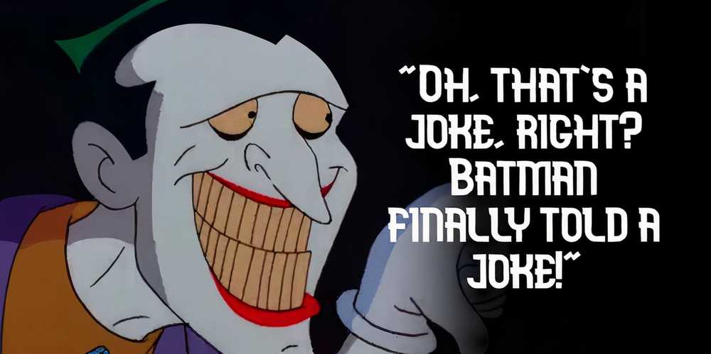 This Batman: TAS line encapsulates Joker’s frustration with Batman’s stoic nature. From Joker’s perspective, everything, including murder, is part of one big joke, and Batman’s refusal to see the humor in it only intensifies Joker’s obsession with him. It’s a playful pun that also speaks to Joker’s deeper pathology – his inability to understand why Batman won’t play along with his antics.