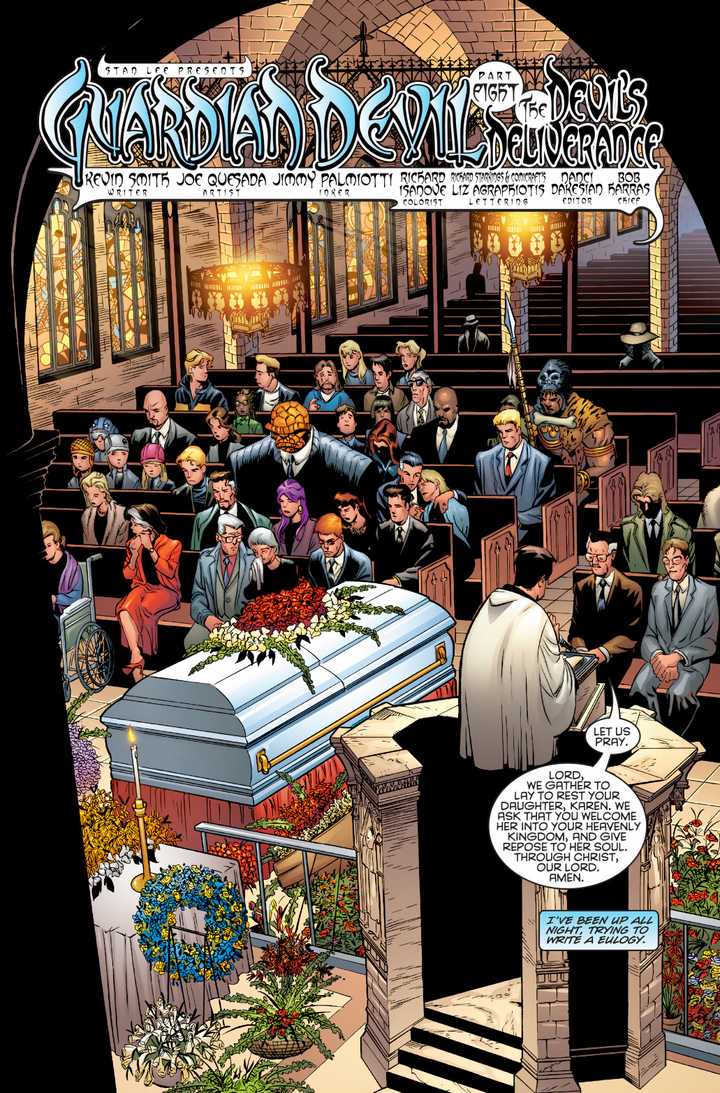 Página de Karen Fue una vez uno de los aliados más cercanos de Daredevil y un interés amoroso desde hace mucho tiempo para el perro guardián vigilante de Hell’s Kitchen. Originalmente secretaria del bufete de abogados de Matt y Foggy Nelson, se convirtió en un personaje constante en las historias de Daredevil durante más de treinta años. Desafortunadamente, karen se sacrificó para salvar a Daredevil de Mysterio, para nunca volver a los cómics desde entonces.
