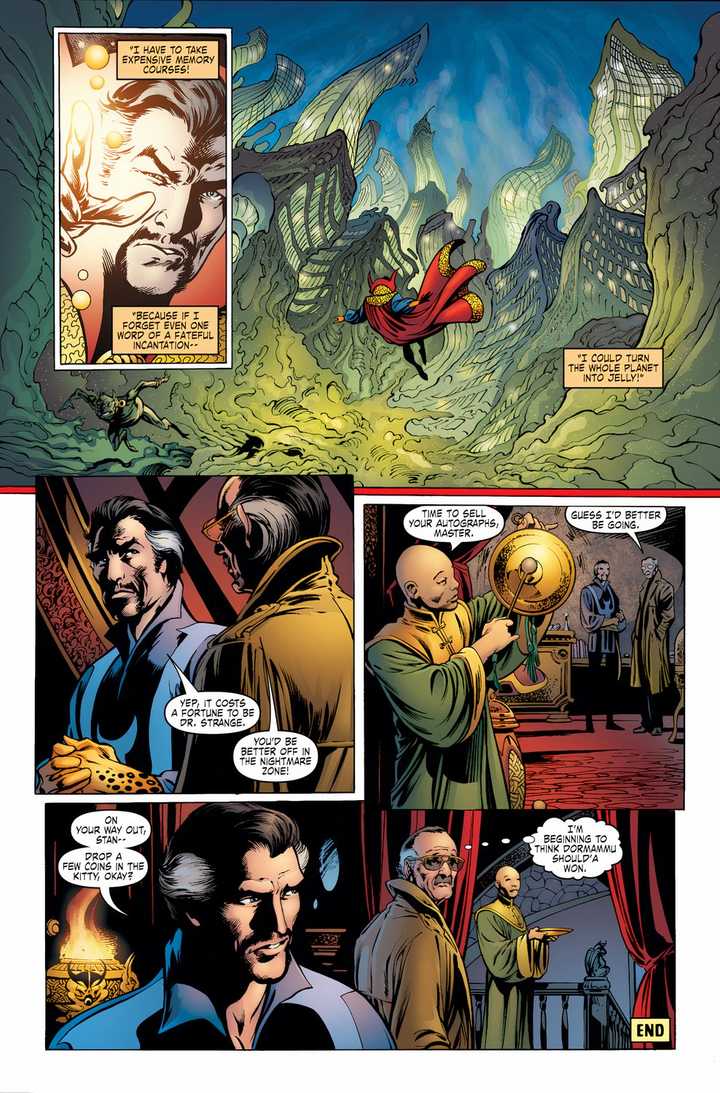 En este cameo mágico, Stan Lee pasa por el Sanctum Santorum para visitar a su viejo amigo, el Doctor Strange. Desafortunadamente para Strange, últimamente ha pasado por momentos difíciles. Está agotado por sus múltiples deberes, lucha por mantenerse al día con las constantes amenazas ocultas dentro de las artes místicas y está atrasado en más de unas cuantas facturas.