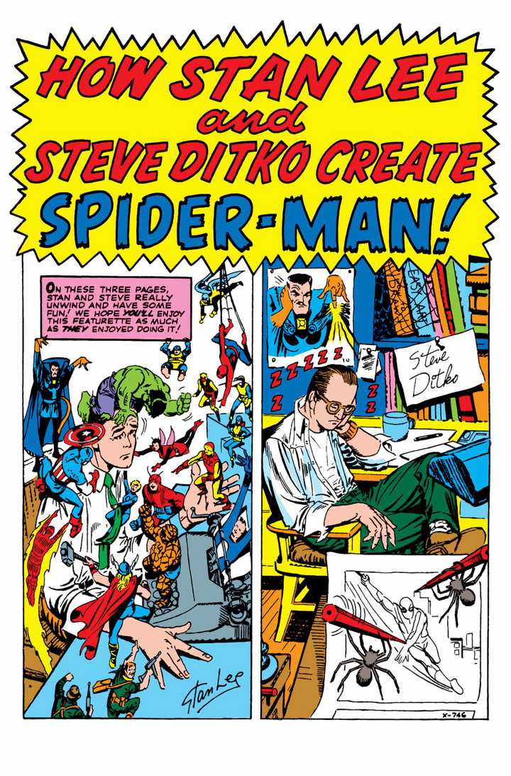 uno de Los primeros cameos de Stan Lee y Steve Ditko, “Cómo Stan Lee y Steve Ditko crean a Spider-Man” muestra una mirada detrás de escena de los esfuerzos exhaustivos que se necesitan para crear las historias cómicas favoritas de todos. Stan está consumido por su trabajo, lucha por escribir su guión mientras se ve invadido por sus muchas creaciones. Mientras tanto, Ditko aprovecha la oportunidad para tomar una merecida siesta y deja que un par de arañas se hagan cargo. Los cómics de Spider-Man.