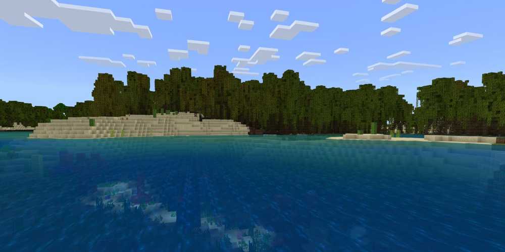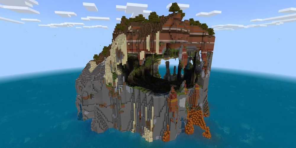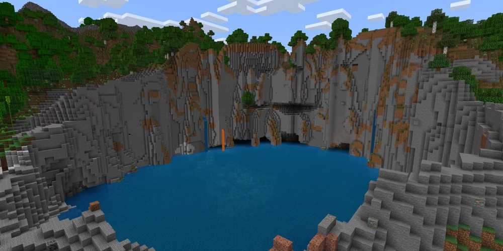 It’s a great seed for some unique Creative Mode builds and an option for Survival Mode players who want to challenge themselves. The lakeside cliffs feature lots of Coal Ore in Minecraft, and there are also deep underwater caverns with rich veins of Ore. Underwater mining is an extremely dangerous endeavor even for experienced players, so getting minerals from beneath the lake poses quite a challenge.