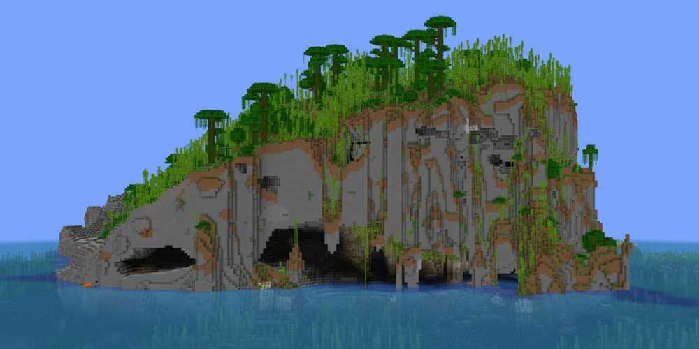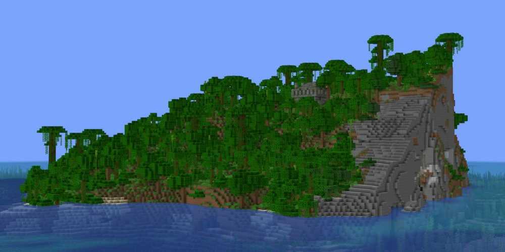 Jungle Cliffs Island follows in the footsteps of Dark Forest Cliff Island. The main difference, as you may have guessed, is that this island seed at spawn includes a Jungle biome and plenty of Bamboo for Bamboo wood.