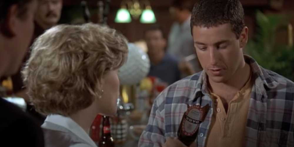 It is a darkly funny moment that is hard not to laugh at because of how nonchalantly Sandler delivers the line with just a hint of contempt in his voice. Happy is so unwilling to admit that he was broken up with that he invents this violent demise for his ex. It becomes funnier later when Happy tells Virginia that his girlfriend “fell off a cliff, died on impact.”