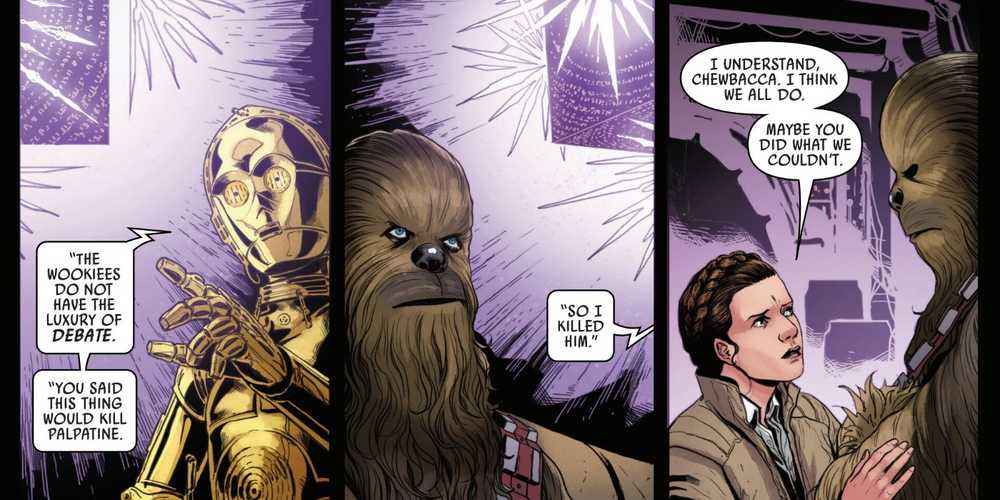 Afortunadamente, Luke encuentra la manera de desactivar Grim Rose antes de que pueda terminar su oscuro trabajo que habría convertido a Chewbacca en un asesino en masa en lugar de en el que finalmente acabó con Palpatine solo. Sin embargo, uno no puede evitar respetar al wookiee por su audacia. Chewbacca estaba dispuesto a hacer lo difícil y acabar con la vida del Emperador cuando se presentó la oportunidad en el guerra de las galaxias canonaunque naturalmente estuvo de acuerdo en que cerrar la caja era lo correcto una vez que se reveló el costo real.